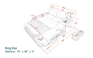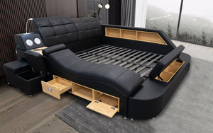 This innovative bed is designed to provide ample storage space without compromising on comfort or style. With storage options built into the headboard, ottoman, side shelf, and drawers, you can say goodbye to clutter and hello to a clean and organized sleeping space. The Smart Bed storage system is the perfect choice for anyone looking to maximize their bedroom's storage potential while maintaining a sleek and sophisticated look. Say goodbye to clutter and hello to a better night's sleep with the Smart Bed storage system.